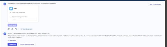 - Automated Process Flow Generation: AI dynamically creates integration workflows by analyzing user-provided inputs or predefined templates.