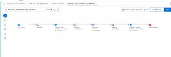 Use case-2: create a process ‘PRCS_New_Residence_AI_GENERATED’ with start shape as no data and pass a the service id from the message shape, using the service id, fetch the data from salesforce get action, and use the data which it retrieved from salesforce and create a Json request and trigger the http rest API to create new residence, get the http rest API response and update it back into salesforce table using the service id as a filter