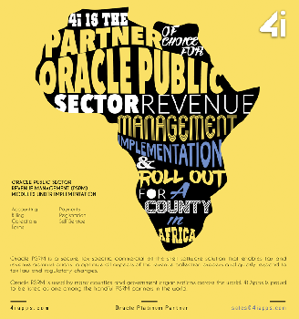 4i Apps starts implementation of Oracle PSRM – Public Sector Revenue Management for a county in Africa.  With Oracle Certified consultants in PSRM, 4i joins the league of niche players offering PSRM solution.
