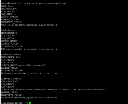 MIN_SIZE: The minimum number of servers that should run in a server pool. If the number of servers contained in a server pool is below the minimum size specified in this attribute, then Oracle Clusterware automatically moves servers from other pools into this one until that minimum number of server is met. The default value is 0.